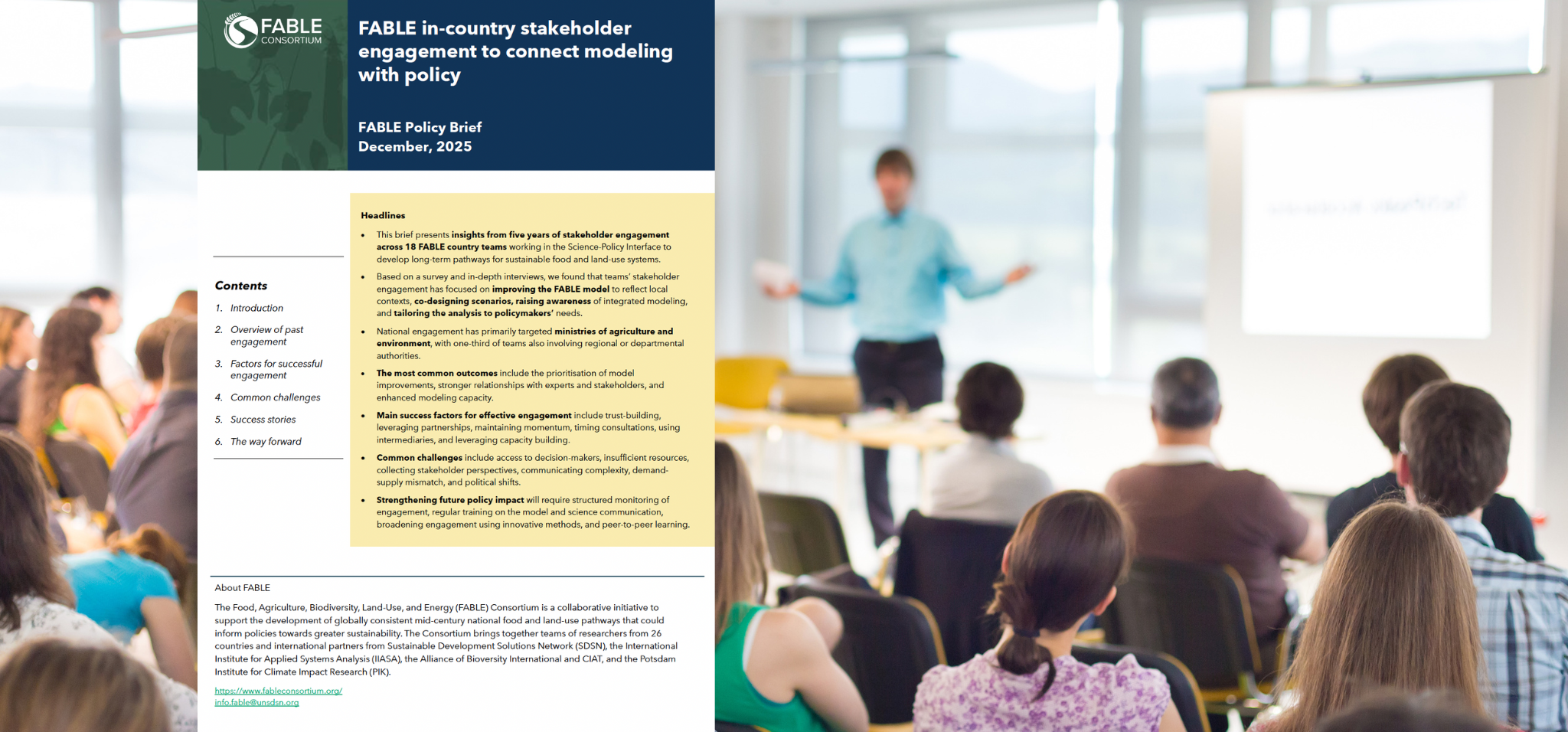 This policy brief presents insights from five years of stakeholder engagement by FABLE country teams working at the science-policy interface to develop long-term pathways for sustainable food and land-use systems. Drawing on a survey and in-depth interviews, it highlights what has worked, what has proven challenging, and how researchers can strengthen their approach for greater policy impact.